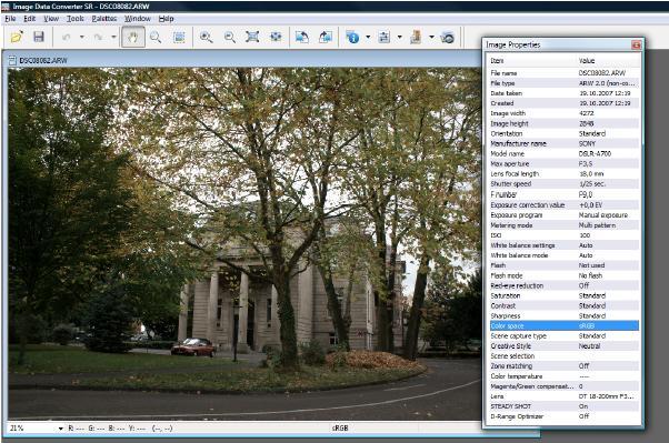 Upravljanje barv s programsko opremo Sony Image Data Converter SR (IDC SR)