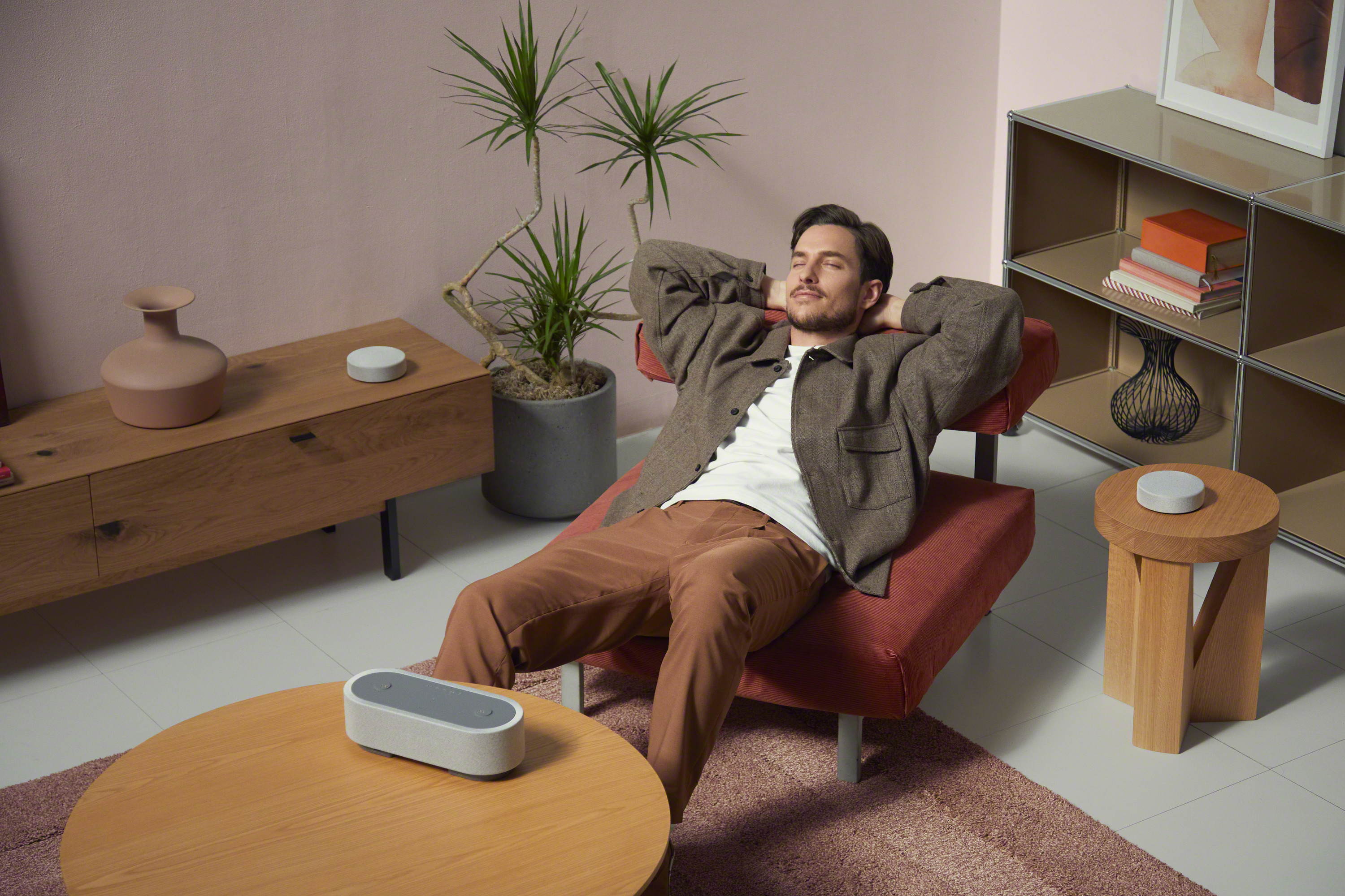 Tri zvočnike preprosto razporedite okrog sebe in že lahko uživate v navdušujoči izkušnji zvoka – ne samo v dnevni sobi, temveč tudi v spalnici, na balkonu oziroma povsod, kjer to želite.