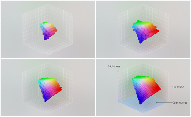 Združitev neodvisno krmiljenih elementov LED in Sonyjeve lastniške tehnologije krmiljenja osvetlitve ozadja je omogočila popolno optimizacijo širokega barvnega obsega panela po celotni površini zaslona. Rezultat je natančen prikaz še tako majhnih razlik v odtenkih tudi na velikih zaslonih. Poleg tega se lahko sistem pohvali tudi s funkcijo, ki dinamično dodeljuje optimalno moč vsakemu RGB-kanalu glede na prizor. Medtem ko običajni televizorji z visoko svetlostjo osredotočajo osvetlitev na svetle elemente, kot so zvezde ali luna v nočnih prizorih, Sonyjev pristop prilagaja svetlost v sozvočju z barvnimi prehodi. To zagotavlja, da so tudi prizori, kjer prevladuje ena sama barva – na primer modro nebo ali rdeče jesensko listje – prikazani s svetlimi in živahnimi podrobnostmi. Še več – sistem lahko doseže najvišjo raven svetlosti*3 več kot 4.000 cd/m², kar je vrednost, ki jo najdemo pri Sonyjevih profesionalnih monitorjih. S tem je dosežen največji volumen barv v zgodovini Sonyjevih naprav za prikazovanje slike.