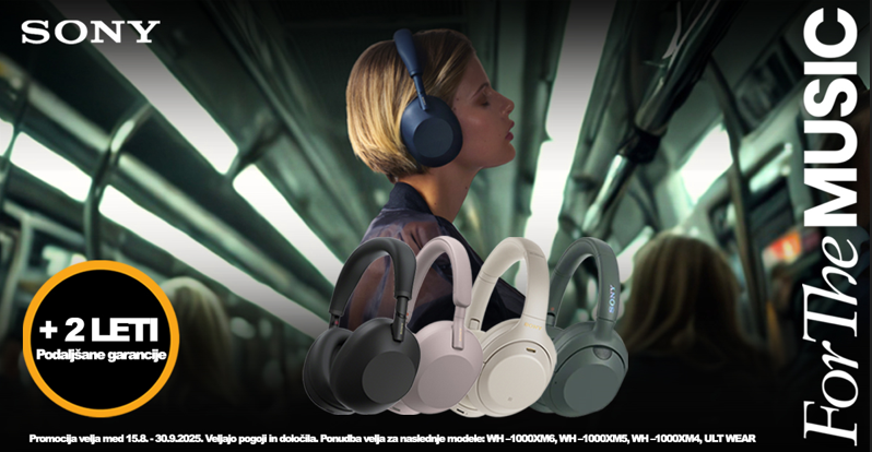Ob nakupu izbranih modelov iz serije WH-1000X v času promocije med 15. avgustom in 30. septembrom 2025 sta dodatni 2 leti garancije, kar pomeni skupno 3 leta brezskrbne uporabe. Več tukaj.